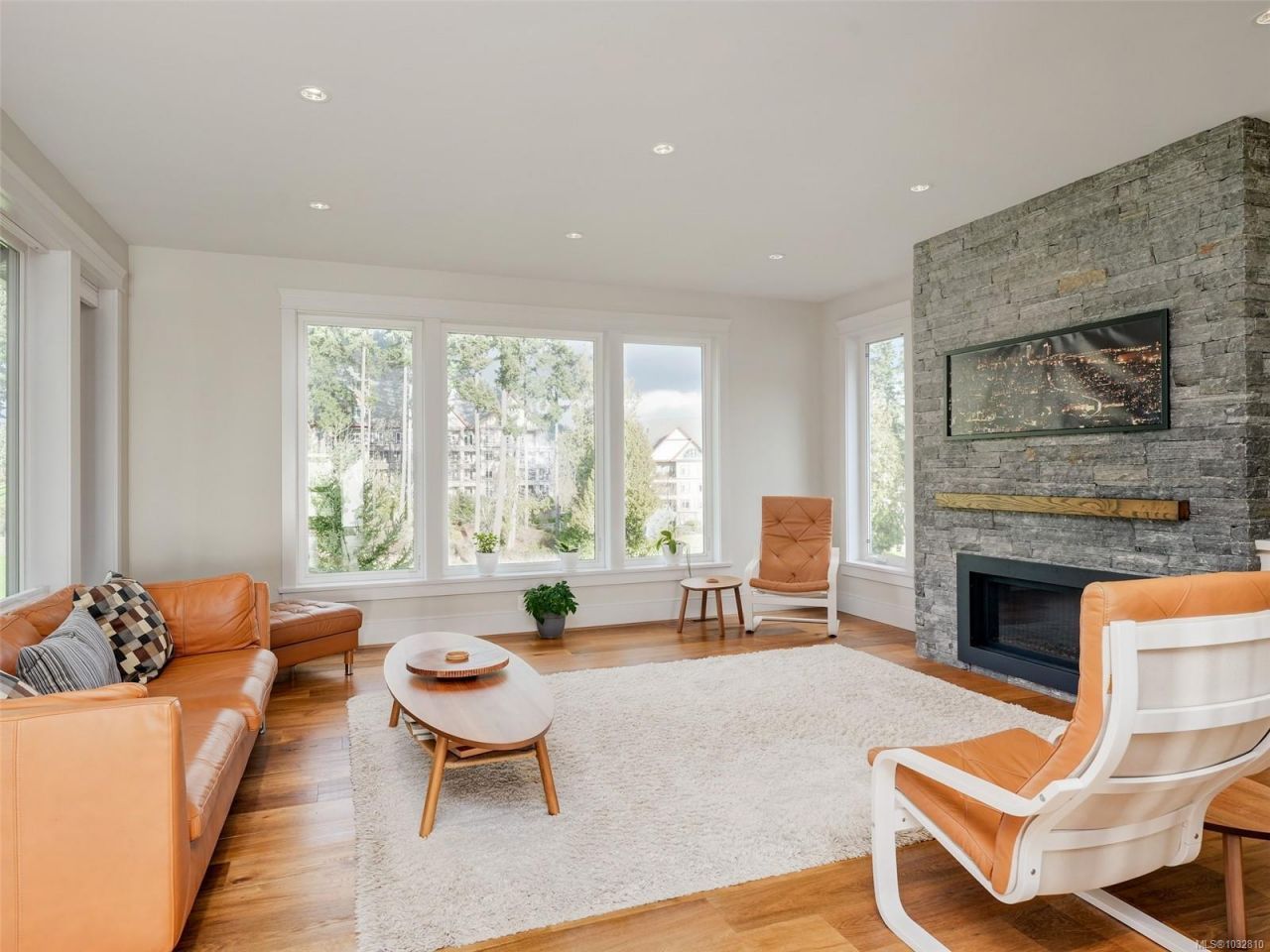 Welcome to the coveted Champions Way, where this 5 bed, 4 bath West Coast inspired executive home overlooks the 9th hole of the prestigious Jack Niklaus designed Bear Mountain G&CC. Thoughtful design and detail is evident with wide plank wood floors throughout the open plan main level and the stone fireplace in the living room incorporating the natural elements of the surrounding landscape. The chef's kitchen takes center stage featuring a gas range, stainless steel appliances and entertainer's island, while the adjacent dining area opens onto an expansive balcony with golf course views. The primary suite upstairs is an oasis, with a private...read more